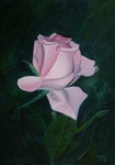 2005's Avonds een roze roos gekregen en dan bij het opstaan parels op de bladeren... Een klein wondertje! Wilt u dit schilderij kopen of huren? Stuur mij een e-mail via de icoon reageer of neem contact op met artolive (zie links).